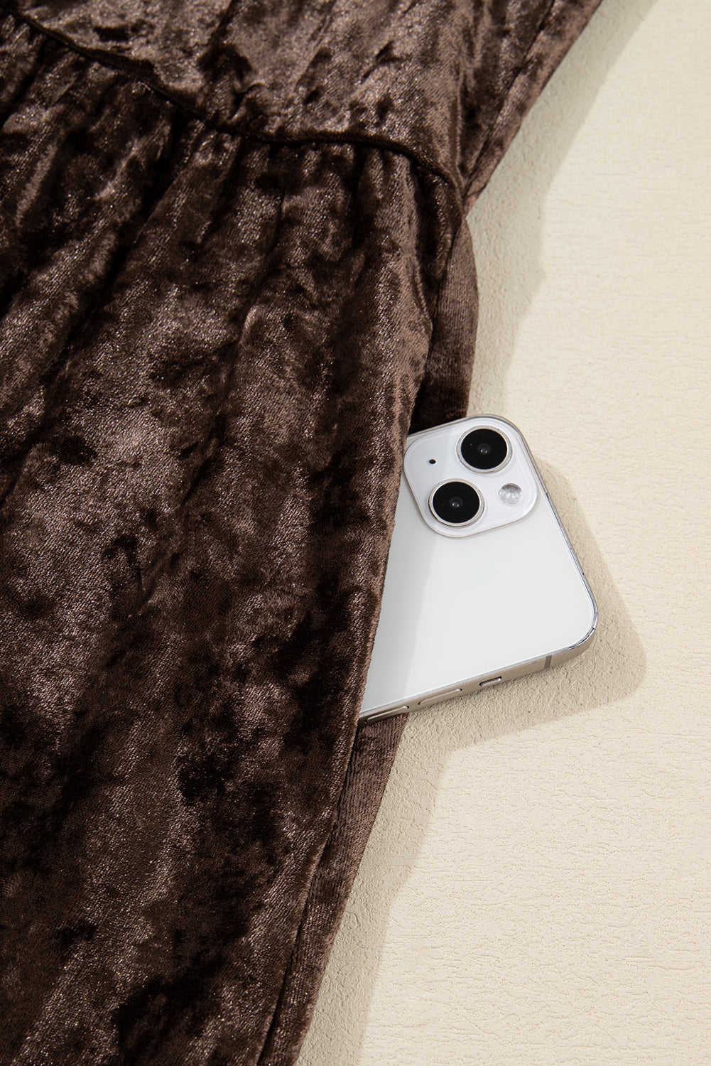 Coffee Velvet Plus Size Babydoll Mini Dress