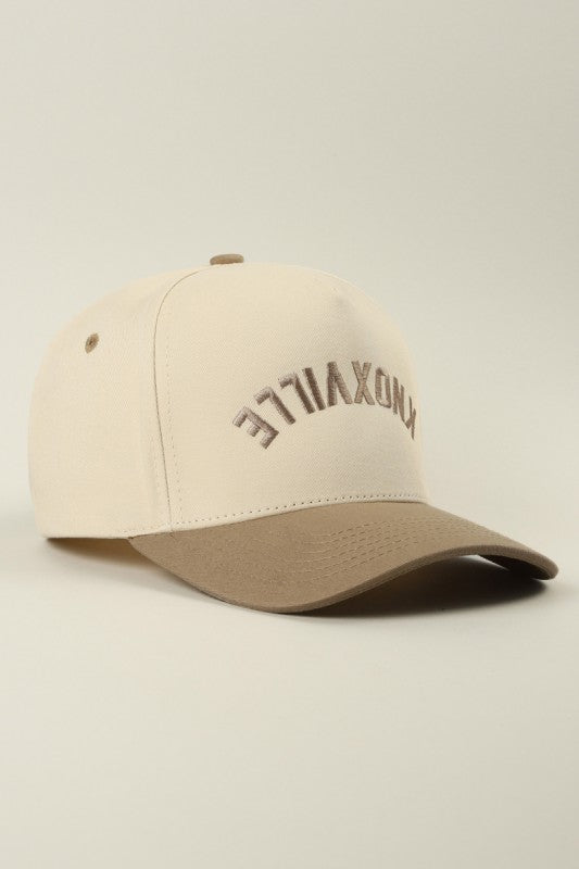 Keep your style effortless and modern with this neutral-toned Knoxville embroidered cap. Featuring a unique upside-down arched design across the front, this hat adds a cool, contemporary twist to any outfit.